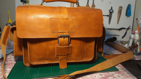 43cm x 29cm x 17cm boyutlarında, full grain (tam tahıl) deriden üretilmiş postacı çantası. İki yanda cebi ve ön kısmında ansiklopedi sığabilecek bir gözü mevcuttur. Tamamen el emeği ve ince işçilikle ile üretilmiştir. El dikişidir.